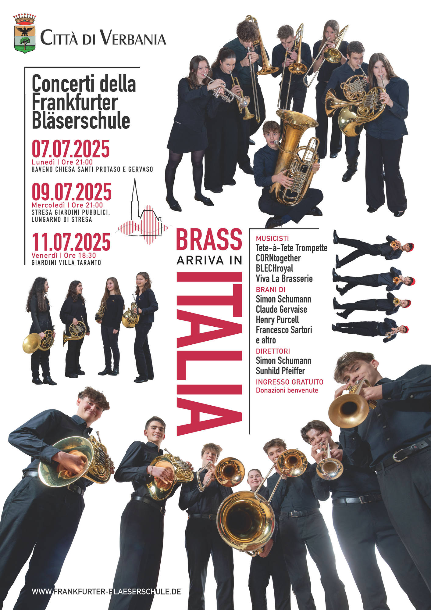 Drei FBS-Konzerte wurden von der Stadt Verbania organisiert: das erste in der Kirche in Baveno, das zweite direkt am Seeufer in Stresa und das dritte im Garten der Villa Taranto. Ein viertes Konzert fand im Gästehaus als Dankeschön für die Gastgeberinnen und weiteren Gästen des Hauses statt.
